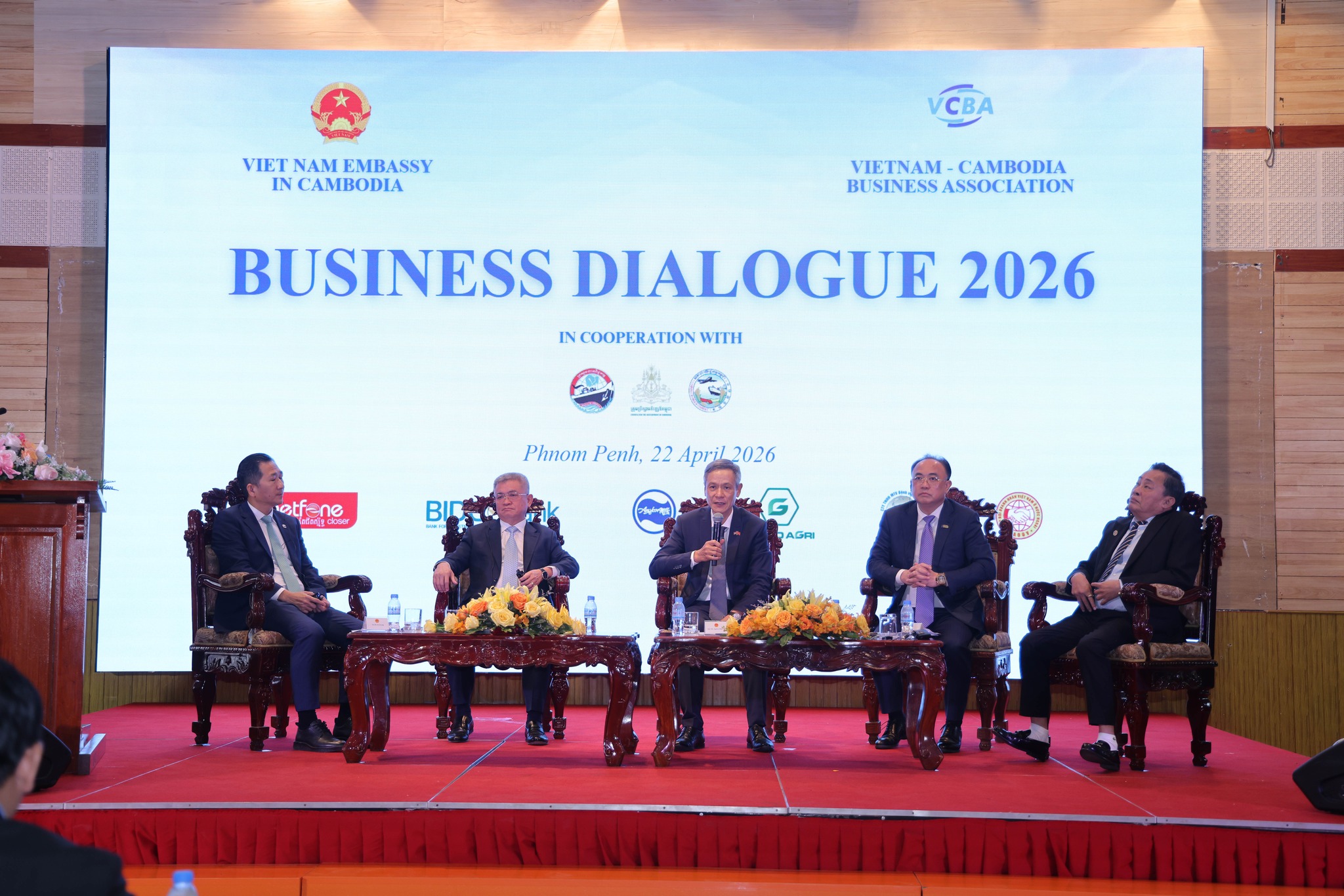 នារសៀលថ្ងៃពុធ ៦កើត ខែពិសាខ ឆ្នាំមមី សប្តស័ក ពុទ្ធសករាជ ២៥៦៩ ត្រូវនឹងថ្ងៃទី២២ ខែមេសា ឆ្នាំ២០២៦ អ្នកឧកញ៉ា គិត ម៉េង ប្រធានសភាពាណិជ្ជកម្មកម្ពុជា និងជាប្រធានក្រុមប្រឹក្សាពិគ្រោះយោបល់ធុរកិច្ចអាស៊ានសម្រាប់កម្ពុជា បានអញ្ជើញចូលរួមថ្លែងសុន្ទរកថាក្នុង «កិច្ចសន្ទនាធុរកិច្ចកម្ពុជា-វៀតណាម ឆ្នាំ២០២៦» ដែលសហការរៀបចំដោយស្ថានទូតនៃសាធារណរដ្ឋសង្គមនិយមវៀតណាមប្រចាំព្រះរាជាណាចក្រកម្ពុជា និងសមាគមធុរកិច្ចកម្ពុជា-វៀតណាម។ កិច្ចសន្ទនាធុរកិច្ចនេះ មានការអញ្ជើញចូលរួមដោយ ឯកឧត្តម Nguyen Minh Vu ឯកអគ្គរដ្ឋទូតវិសាមញ្ញ និងពេញសមត្ថភាពនៃប្រទេសវៀតណាមប្រចាំកម្ពុជា, ឯកឧត្តម ជា វុទ្ធី អគ្គលេខាធិការនៃគណៈកម្មាធិការវិនិយោគកម្ពុជានៃក្រុមប្រឹក្សាអភិវឌ្ឍន៍កម្ពុជា, ឯកឧត្តម ហូ ស៊ីវយ៉ុង ប្រតិភូរាជរដ្ឋាភិបាលកម្ពុជាទទួលបន្ទុកជាអគ្គនាយកសេវាពាណិជ្ជកម្មនៃក្រសួងពាណិជ្ជកម្ម និងឧកញ៉ា ឡេង ឬទ្ធី ប្រធានសមាគមធុរកិច្ចកម្ពុជា-វៀតណាម, សមាជិក សមាជិកា សភាពាណិជ្ជកម្មកម្ពុជា និងធុរជននៃប្រទេសទាំងពីរជាច្រើន។